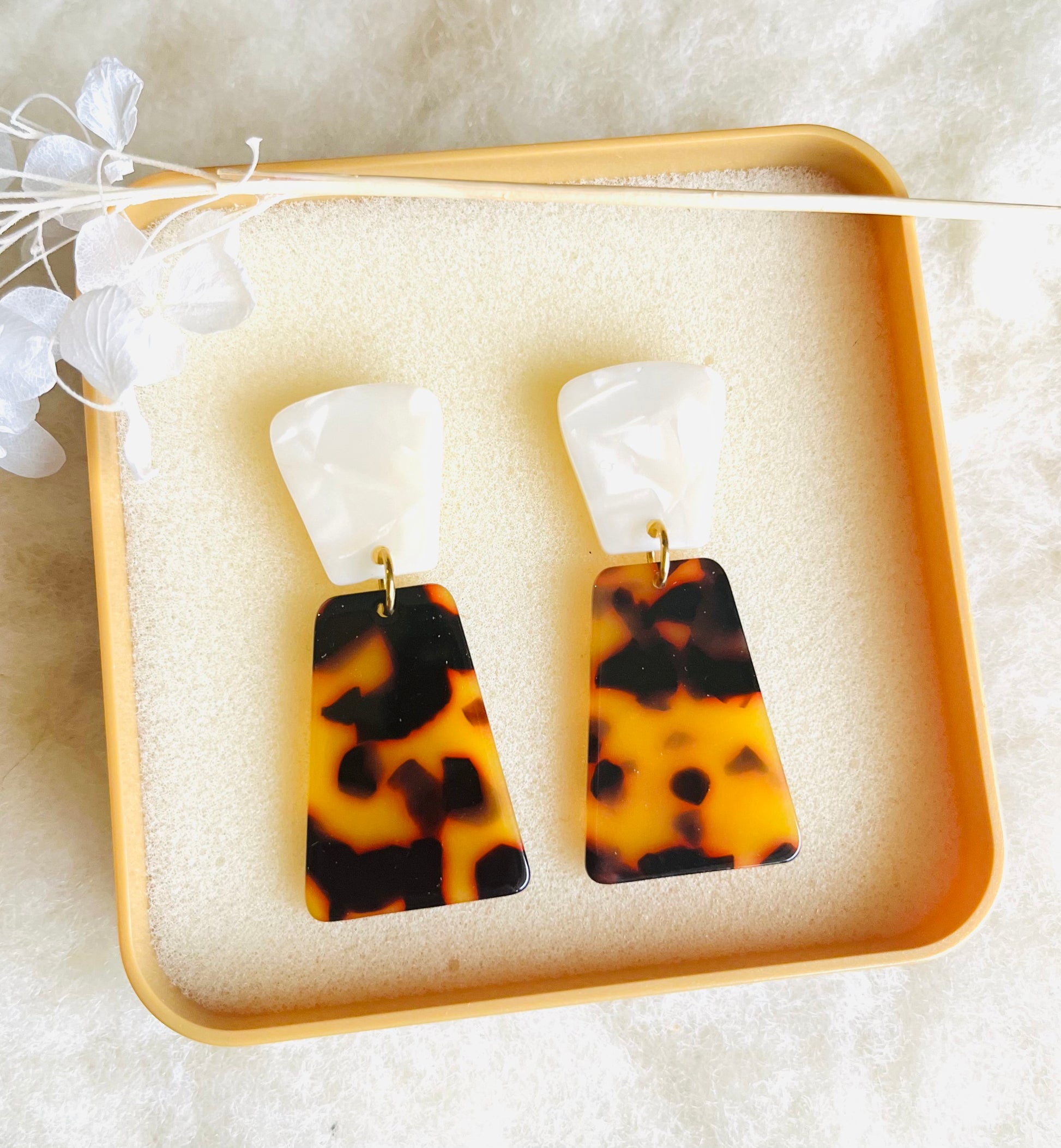 - Pendentifs blanc et écaille de tortue en acétate