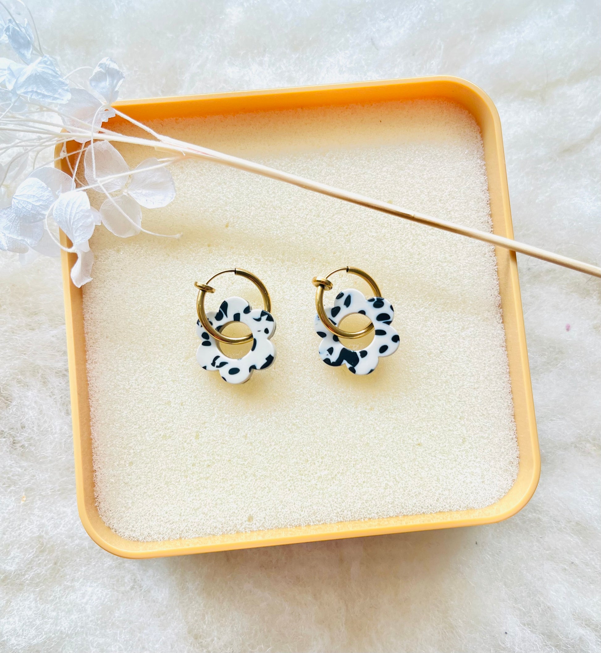 Vous hésitez sur la couleur ou vous avez déjà des créoles ? Vous pouvez aussi acheter les fleurs seules sur l'article "Boucles d'oreilles ESTAGNOTS - sans créoles".